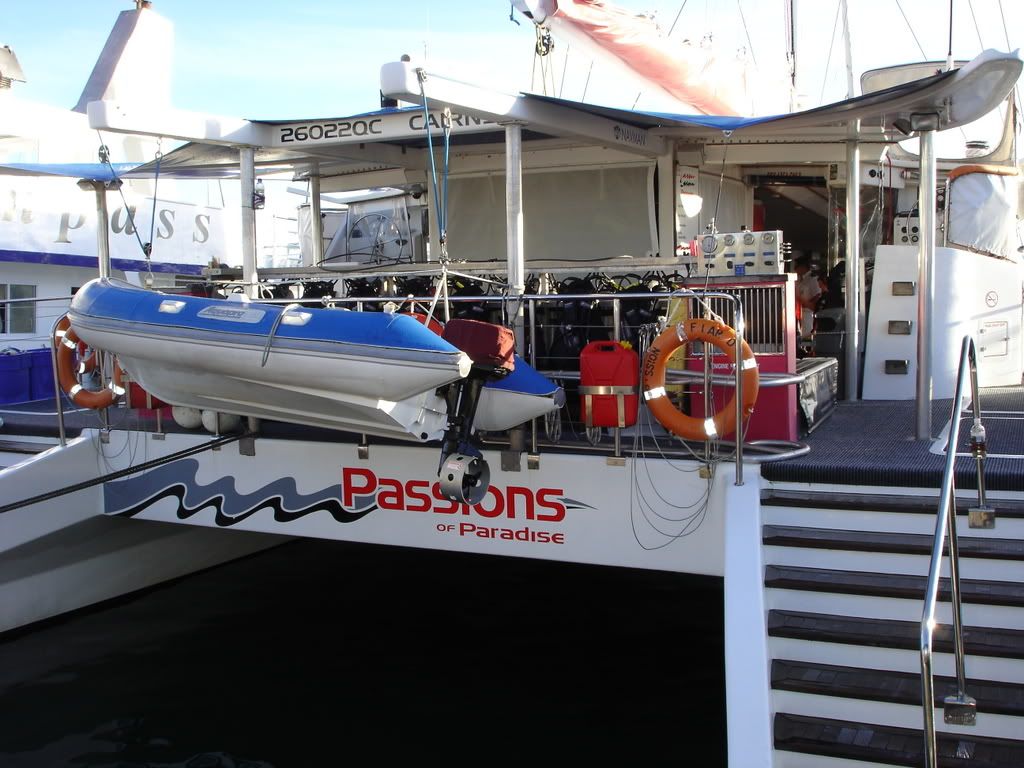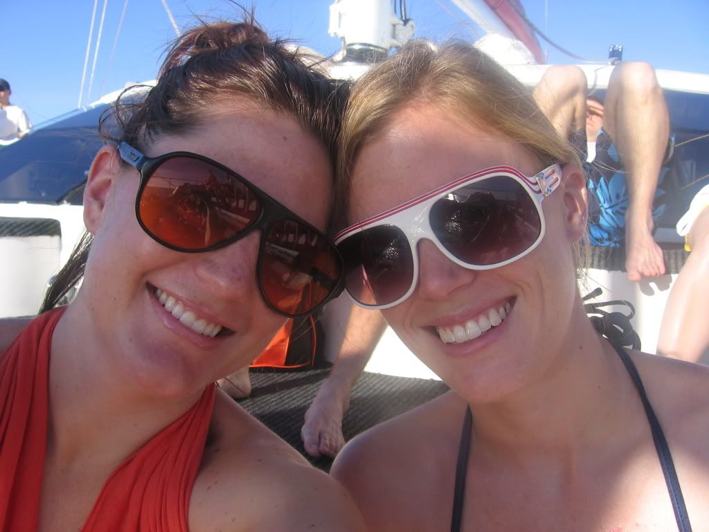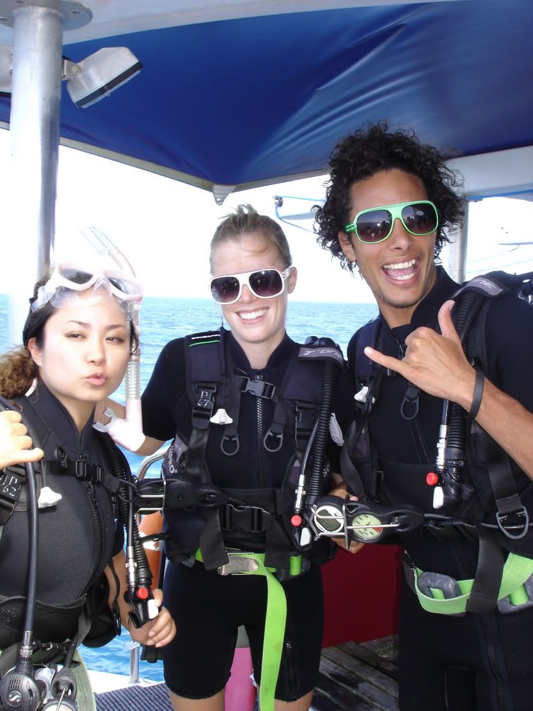 5/20 - Chelsea and I woke up bright and early to walk to the marina to meet our sailing catamaran, Passions of Paradise, for a daytrip to the Great Barrier Reef. We boarded Passions at 8:30am and were soon on our way to the reef, enjoying complimentary coffee and chocolate muffins and listening to a diving debrief. After two hours of motoring, we pulled up to our first stop, Upolu Cay, a small island of sand formed on top of the coral reefs. We did our first dive here, which was every bit as amazing as I had heard. There were only 3 other certified divers on board, so we went down in a small group, and while Dutchie, my partner, was chasing after an adorable sea turtle, I turned around and spotted my first shark, a small reef shark, but a shark nonetheless. I didn’t feel scared like I thought I would, just fascinated by the creature that had inspired so much fear. I tried to signal Dutchie with the jaws sign against my forehead, but he thought I meant I needed to go to the surface and started to make his way up, and missed the shark all together. He was so upset.