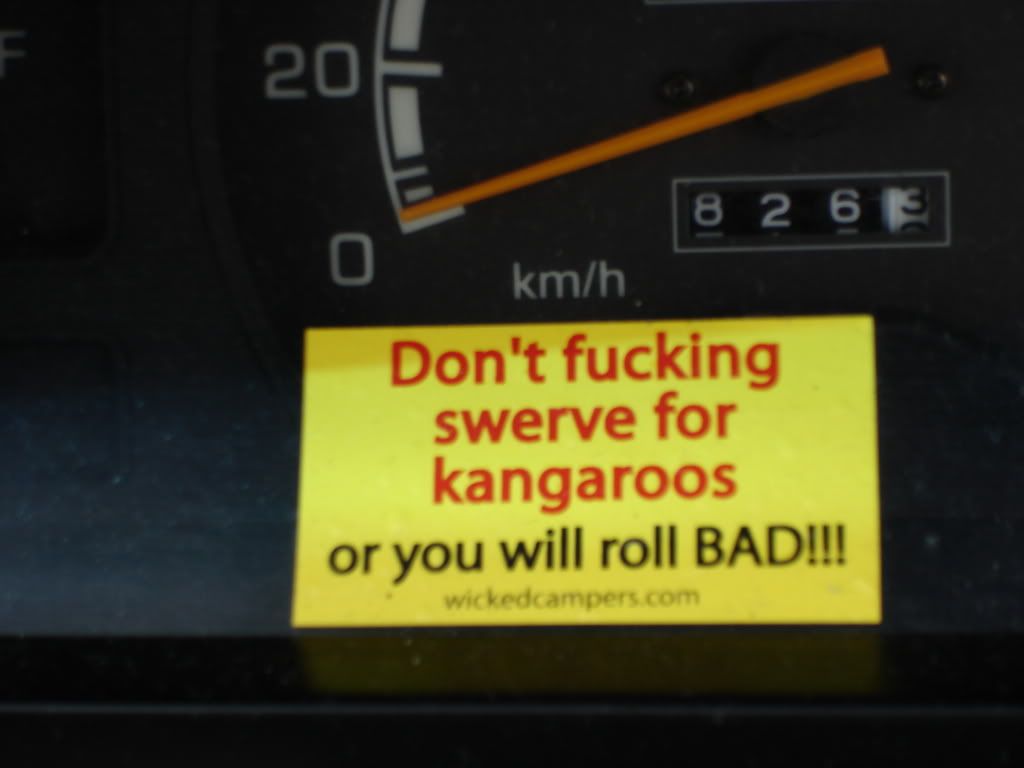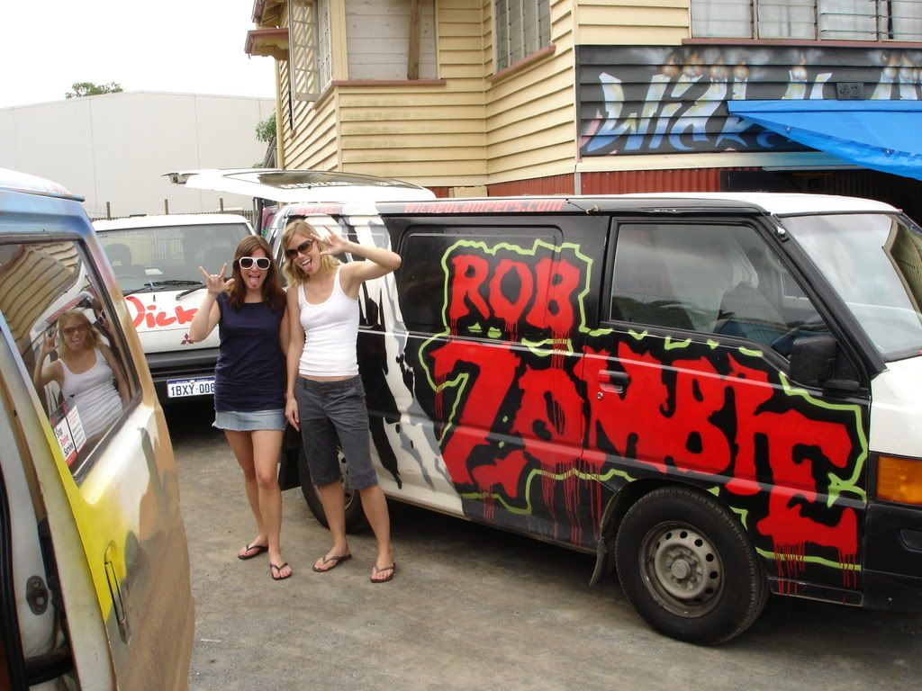 When it was our turn, we signed some paperwork, gave an imprint of our credit card, and with a few words of caution to check the oil and water levels in the engine, we were pushed out the door. We’d been eyeing a David Bowie van, but the couple ahead of us drove off in it. We were given the Rob Zombie instead, which was perfect. Two preppy girls from New York traveling in an ultra goth, black van with Rob Zombie's face painted in blood red on the side; the words “Yeah I want it, Yeah I need it, Yeah I love it” scrawled on the back. Turns out we were lucky—the Salt Lake boys got stuck with Toy Story. We filled the empty tank with $40 of petrol and hit the road.