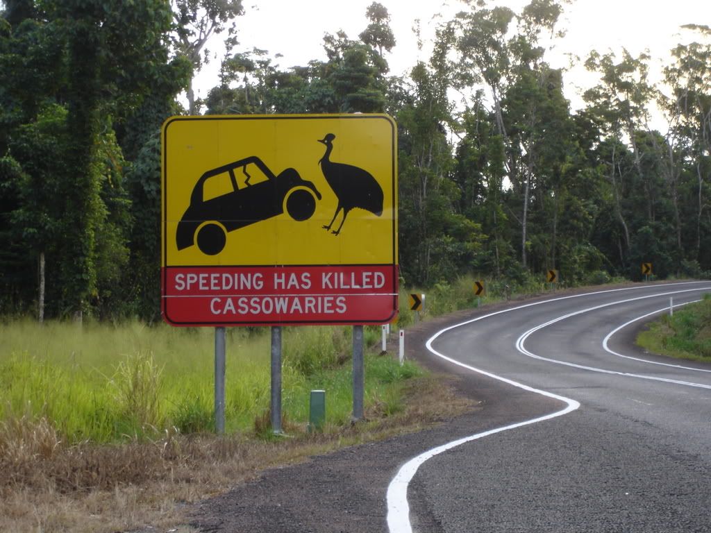 Chelsea took the wheel for the first leg of the trip. After a stop at Coles to fill up on a week’s worth of food, we headed two hours south to Mission Beach for a picnic lunch. The beach is 20km east of the highway along a slow-going, winding road where speed is reduced to protect the flightless cassowary. The cassowary, a man-sized, three-toed bird with a blue and purple head, red wattles, a helmet-like horn, and funky black feathers that resemble ratty hair, are protected in Australia for their precious poo which is vital to the rainforest’s ecosystem. They have recently been known to attack humans if they feel threatened, and in the chance of an encounter, you are advised to keep something between you and the bird at all times, preferably a large tree. Although we were very casso-weary, we weren’t lucky enough to spot one of these formidable creatures.