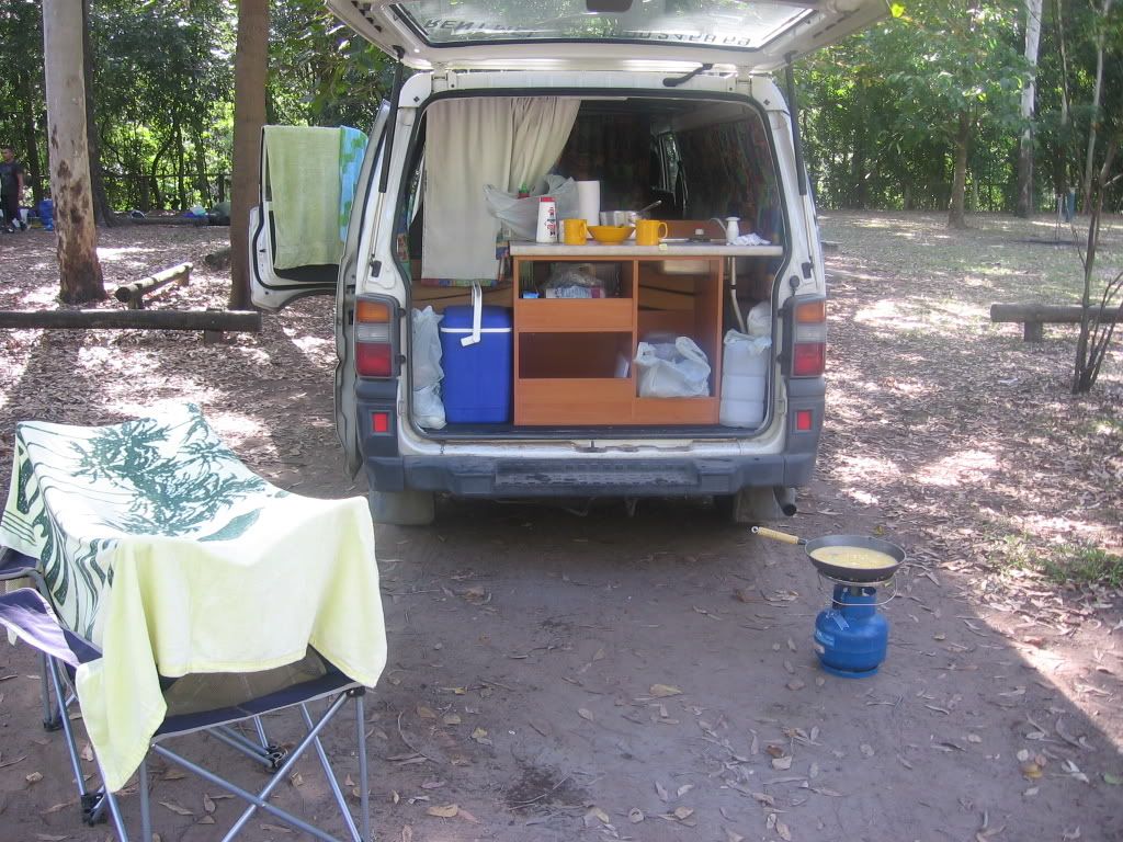 We spent our first night in Rob Zombie at a dreadful campsite next to a group of rowdy high school boys on a school trip. The bathrooms were dismal and the morning light revealed large lizards, frogs, spiders, and colonies of ants inhabiting the showers. We were up early to cook our first camp breakfast – scrambled eggs, toast and tea—and hit the road for Arlie Beach, the gateway to the Whitsunday Islands.
